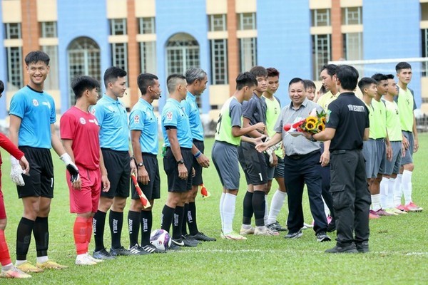 Đại diện BTC dự khai mạc vòng loại giải U.21 trên sân Thành Long ở bảng D (Ảnh: Khả Hòa)