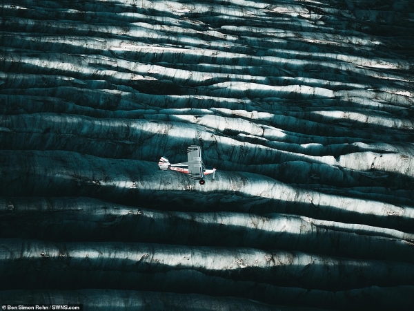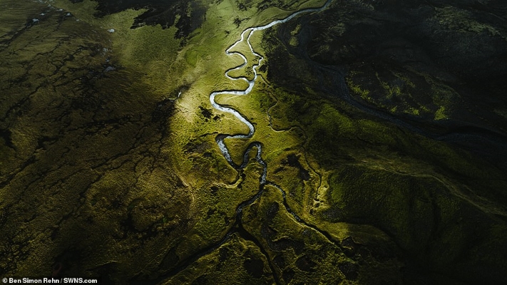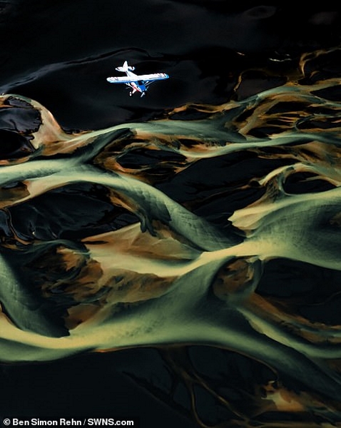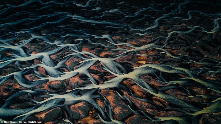 Những bức ảnh tuyệt đẹp của nhiếp ảnh gia Ben Simon Rehn thể hiện khung cảnh ngoạn mục, hiếm thấy của tự nhiên như dòng sông băng tan chảy và uốn lượn hay những ngọn đồi xanh tươi tốt, ngọn núi hiểm trở và núi lửa… Ben chia sẻ: “Iceland và Greenland từ mặt đất khá tuyệt nhưng từ trên trời chúng là những thế giới khác nhau”.