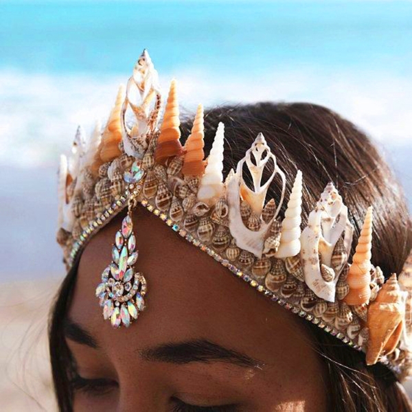 Đó có thể là vương miện ốc giúp bạn hóa thành nàng công chúa thủy cung hay những đôi bông tai, vòng tay, vòng cổ có mặt là những vỏ sò, ốc xinh xắn, chế tác tinh xảo. Lưu ý: Dùng mũi khoan nhỏ để khoan lỗ trên vỏ sò, ốc và viền dây buộc cố định vỏ sò, ốc cho chắc chắn.