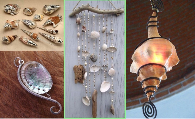 – Những vỏ sò, ốc to, bạn có thể biến tấu thành chuông gió hoặc những chiếc đèn trang trí độc đáo.