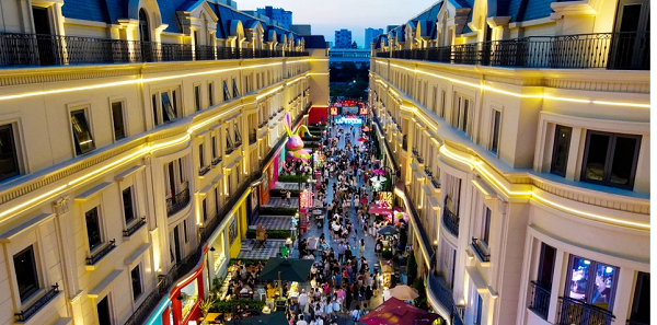 Khi đến đây du khách chỉ cần giơ máy ảnh của mình lên thì ở góc nào cũng như đang ở trời tây. Ngoài ra khu phố có một sân khấu ca nhạc miễn phí ngoài trời, một chú thỏ cao khổng lồ hơn 7m đặt tại trung tâm, con đường đèn lồng đỏ, đa dạng các quầy hàng ăn uống… vì thế mà khu phố lúc nào cũng náo nhiệt, càng về tối càng đông. Khi hệ thống ánh sáng được bật lên, khu phố này rực rỡ không khác gì một khu phố thuộc các nước châu Âu.