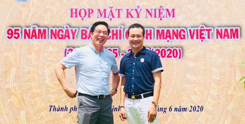 Nhà báo Trọng Ninh (trái) và đồng nghiệp