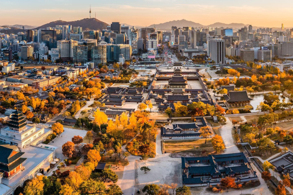 Khung cảnh mùa thu cố cung Gyeongbokgung nhìn từ trên cao