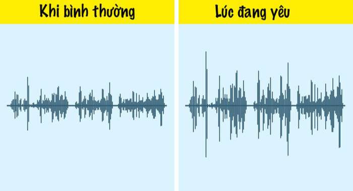 5. Giọng nói thay đổi: Trong cuộc gọi với người yêu, giọng của các cô gái trở nên trầm hơn, còn giọng các chàng trai cao hơn. Các nhà khoa học cho rằng có lẽ bởi vì hai người muốn giống nhau.