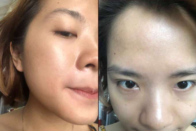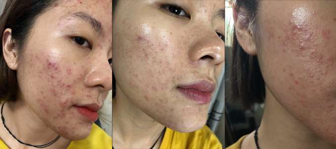 Hiện làn da đã được cải thiện đáng kể nên cô gái trẻ không còn sử dụng các loại thuốc đặc trị thay vào đó là chú trọng dưỡng da, cải thiện các vết thâm do mụn để lại bằng serum và đắp mặt nạ lòng đỏ trứng với sữa bột.