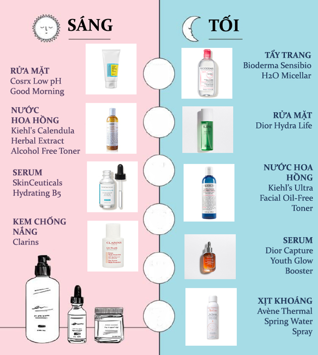 Chu trình chăm sóc da cùng các sản phẩm Thanh Hiền đang sử dụng.