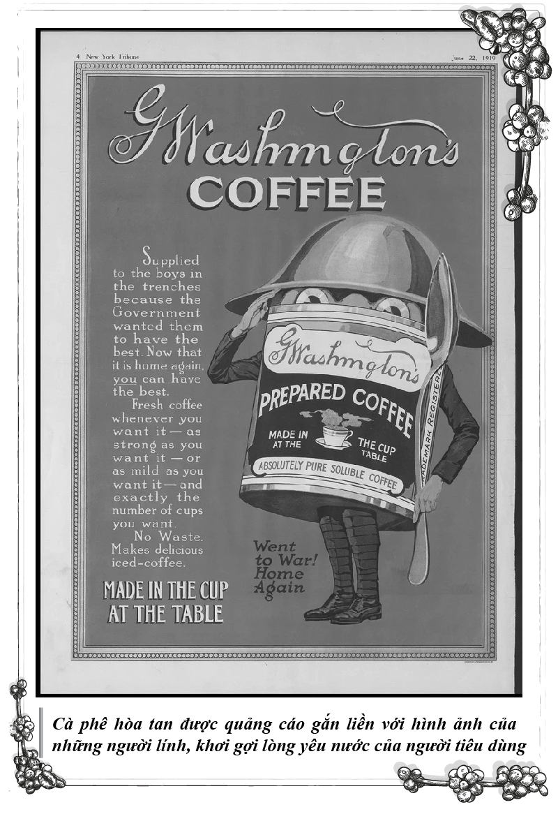 Chính vì vậy, hình ảnh của cà phê đã gắn liền với biểu tượng của những người chiến sỹ quả cảm. Các công ty cà phê của Mỹ đã sử dụng hình ảnh của những chiến binh cùng gia đình họ trong các chiến dịch quảng cáo cà phê hòa tan, nhằm lan tỏa thông điệp về lòng yêu nước và ý chí không khuất phục. Từ đó, cà phê hòa tan càng trở nên phổ biến trong đời sống thường nhật tại Mỹ, như một sự tôn vinh những người đã chiến đấu vì tương lai tươi sáng của đất nước.