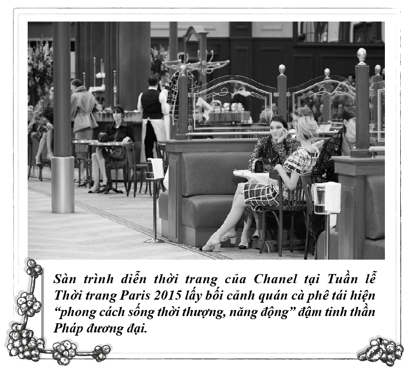 Tại Tuần lễ Thời trang Paris năm 2015, Chanel đã khiến giới mộ điệu ấn tượng khi biến sàn “catwalk” Grand Palais tráng lệ thành một quán cà phê kiểu Paris mang tên “Brasserie Gabrielle”. Trong những thiết kế vải tweed mềm mại, các người mẫu ngồi xuống bàn, tạo dáng như những vị khách tại quán cà phê. Những tên tuổi đình đám trong làng thời trang như Cara Delevingne và Kendall Jenner trò chuyện bên quầy bar, trong khi Joan Smalls chờ thưởng thức ly espresso, tạo nên một khung cảnh thời thượng, sống động, thể hiện sự giao thoa đầy cảm hứng giữa thời trang và cà phê.