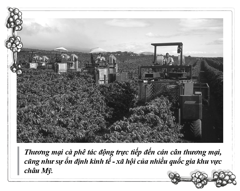 Đặc biệt, thương mại cà phê tại châu Mỹ không chỉ định hình mô hình phát triển kinh tế quốc gia dựa trên xuất khẩu, mà còn ảnh hưởng sâu sắc đến cấu trúc xã hội, lao động và phân bố quyền lực kinh tế. Đặc biệt, cà phê đã làm thay đổi cán cân thương mại, đưa các quốc gia sản xuất cà phê trở thành mắt xích trung tâm trong chuỗi cung ứng toàn cầu.