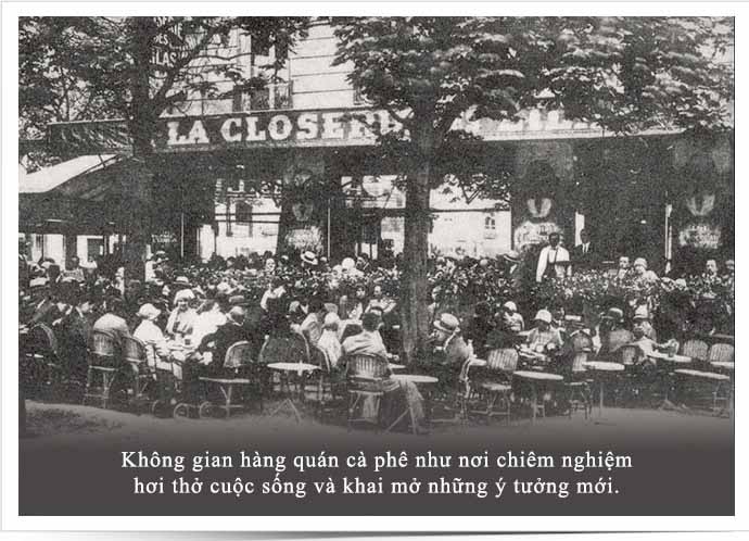 Kết thúc thế chiến thứ nhất, người Pháp khao khát cuộc sống tự do và một xã hội tiến bộ. Đặc trưng là làng sóng sáng tạo, đổi mới trong tất cả các lĩnh vực văn hóa và xã hội. Trong những năm tháng đó, hàng quán cà phê hai bên bờ sông Seine được xem là nơi tiên phong khởi xướng lối sống mới. Giới tri thức sáng tạo đến từ khắp nơi trên thế giới như Ernest Hemingway (tiểu thuyết gia người Mỹ), William Faulkner (nhà văn Mỹ đạt giải Nobel Văn học năm 1949), Max Jacob (họa sĩ, nhà văn và nhà phê bình người Pháp), F. Scott Fitzgerald (nhà văn Mỹ), Vladimir Lenin (lãnh tụ phong trào cách mạng vô sản Nga), Leon Trotsky (một trong những nhà lãnh đạo Cách mạng Tháng Mười Nga), Tsuguharu Foujita (danh họa người Nhật Bản),… quy tụ tại quán cà phê để thảo luận về các sự kiện xã hội, chia sẻ ý tưởng và khát vọng hướng đến một xã hội văn minh.