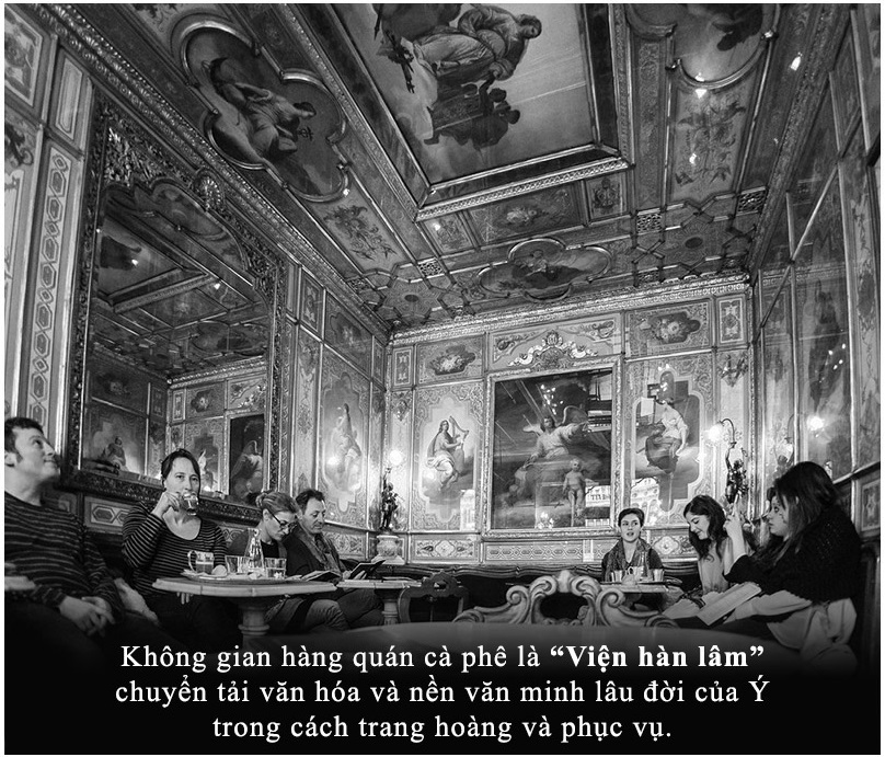 Không quá khi nói rằng, đối với người Ý, không gian hàng quán cà phê không chỉ là lúc và nơi thấu hưởng những hương vị độc đáo đến từ một loại hạt có một không hai mà còn gợi tưởng và ấp ủ một thế giới tươi đẹp cho chính bản thân và cho cả cộng đồng dân tộc.
