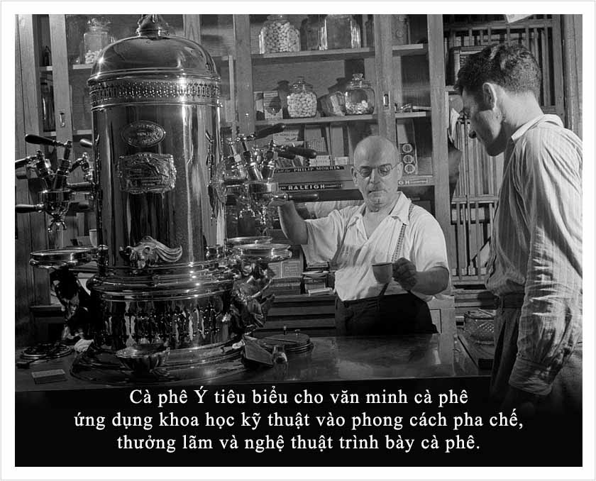 Từ phong cách pha chế cà phê đun của đế chế Ottoman, người Ý – dân tộc đã có những đóng góp quan trọng cho tiến trình phát triển của nhân loại trong thời kỳ Trung Cổ và Phục Hưng, đã tạo tác nên một nền văn minh cà phê mới, gắn liền với các yếu tố công nghệ và sự tiến bộ khoa học. Cũng từ đó, cà phê đã tạo nên làn sóng văn hóa thưởng lãm mới tại châu Âu, lan rộng ra toàn cầu. Các thuật ngữ biểu trưng cho cà phê phong cách Ý như Espresso, Cappuccino, Macchiato, Latte… trở nên phổ biến và được mọi giới, mọi quốc gia yêu thích.