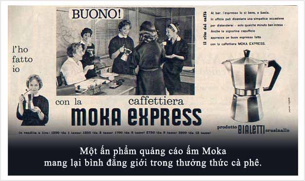 Cà phê ở châu Âu thời kỳ đầu chủ yếu phục vụ cho giới thượng lưu, trung lưu và nam giới trong các hàng quán công cộng. Cho đến năm 1933 khi kỹ sư Luigi di Ponti (1904 – 1993) phát minh ra ấm Moka Express (Moka Pot), văn hóa thưởng thức cà phê tiếp tục tạo ra một “cuộc cách mạng” mới, giúp cho nhiều người có thể thưởng thức Espresso ngay tại nhà và phụ nữ dễ dàng tiếp cận với cà phê hơn.
