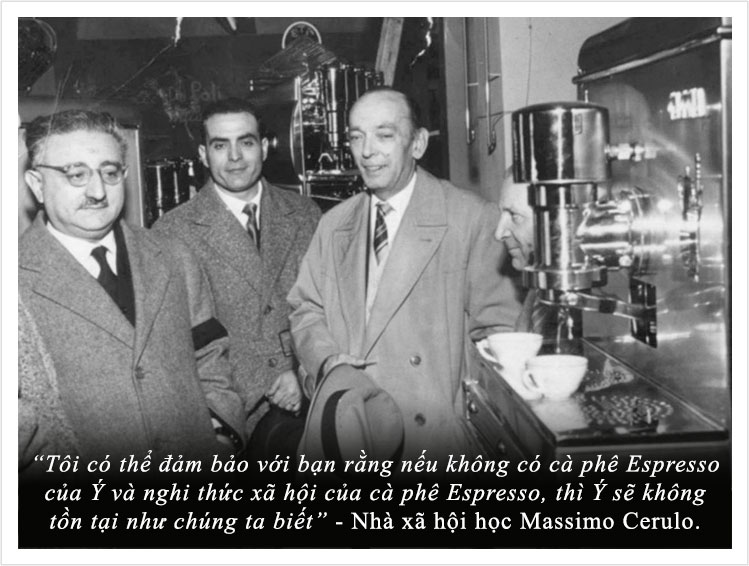Cuộc cách mạng công nghiệp đầu tiên trên thế giới khởi đầu bằng ứng dụng năng lượng hơi nước vào cơ giới hóa sản xuất. Các nhà khoa học Ý đã nghiên cứu và phát minh loại máy sử dụng áp suất hơi nước chiết xuất tinh chất và hương thơm thuần túy, nguyên bản của hạt cà phê trong thời gian nhanh nhất. Từ đặc tính này, thuật ngữ Espresso ra đời và được đưa vào từ điển Ý với nghĩa “Cà phê có thể phục vụ ngay lập tức và chỉ dành cho bạn”.