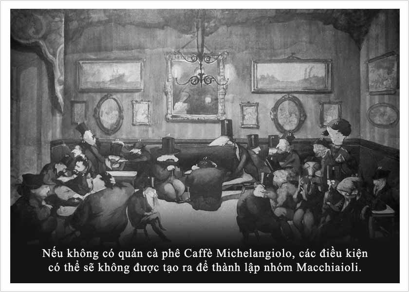 Trong thời kỳ thống nhất quốc gia (Risorgimento), Ý chịu sự thống trị của các cường quốc châu Âu. Từ vị trí lãnh đạo văn hóa và nghệ thuật của châu Âu, Ý trở thành quốc gia bị phân chia không có bản sắc nghệ thuật riêng. Chính giai đoạn này, hàng quán cà phê cũng là nơi những con người mang tinh thần bất khuất của thời đại nuôi dưỡng lý tưởng và thực hiện những cuộc tái tạo vinh quang quốc gia. Quán Caffè Michelangiolo ở Florence là nơi những họa sĩ Ý khởi xướng phong trào nghệ thuật Macchiaioli khơi dậy nghệ thuật Ý, thể hiện tinh thần dân tộc chủ nghĩa thông qua việc sáng tạo phong cách nghệ thuật mới dựa trên những thành tựu nghệ thuật lâu đời của Ý. Vài thập kỷ sau, quán cà phê Caffè delle Giubbe Rosse được vinh danh là “fucina di sogni e di passioni” (nơi rèn giũa những ước mơ và đam mê) cũng là nơi Chủ nghĩa vị lai (Futurism) hình thành, nỗ lực tạo nên bản sắc mới, lấy cảm hứng từ đời sống đương đại và sự tự tôn dân tộc.