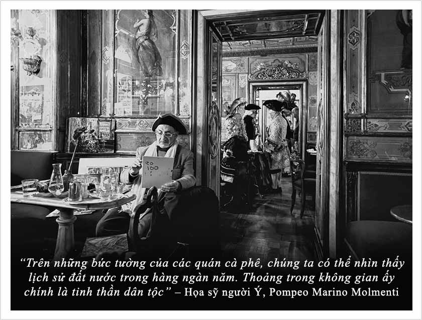 Đối với người Ý, lịch sử dân tộc là đặc quyền đặc tính không phải bất kỳ quốc gia nào cũng có được. Và, một không gian xã hội quan trọng như hàng quán cà phê đã trở thành nơi tái hiện hào quang những nền văn minh trong hàng thế kỷ, biểu trưng cho niềm kiêu hãnh dân tộc Ý.