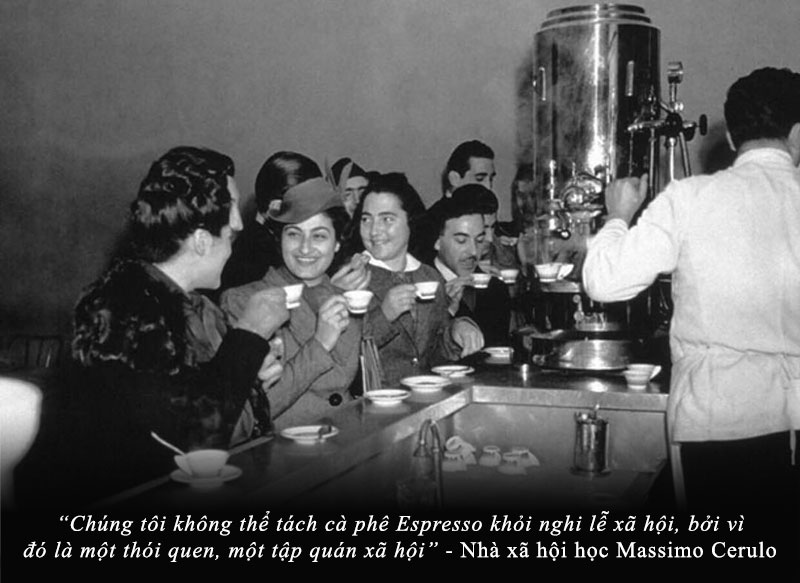 Sự hoàn thiện của cà phê Espresso làm hiển lộ nhân sinh quan của người Ý. Cách thức pha chế và thưởng lãm cà phê chính là những đường hướng biểu cảm các niệm tưởng về vai trò của con người trong cuộc sống, tạo ra một bối cảnh để con người bộc lộ điều mà thâm tâm nó mong muốn. Espresso ra đời khi cuộc cách mạng công nghiệp đang phát triển và lan rộng tại châu Âu. Toàn bộ xã hội chuyển động trong guồng máy sản xuất hàng hóa và sáng tạo. Xu hướng sáng tạo ứng dụng thời kỳ này mục đích cơ bản là mở rộng và củng cố quyền lực kinh tế, chính trị, quân sự và cả tôn giáo… Cà phê trở thành năng lượng cho cả trí não lẫn thể chất, mang đến xúc tác cần thiết để kiến tạo xã hội tri thức. Người Ý sáng tạo nên Espresso từ sự thoát thai của di sản dân tộc dấn thân vào đời sống đương đại để kiến tạo tương lai.