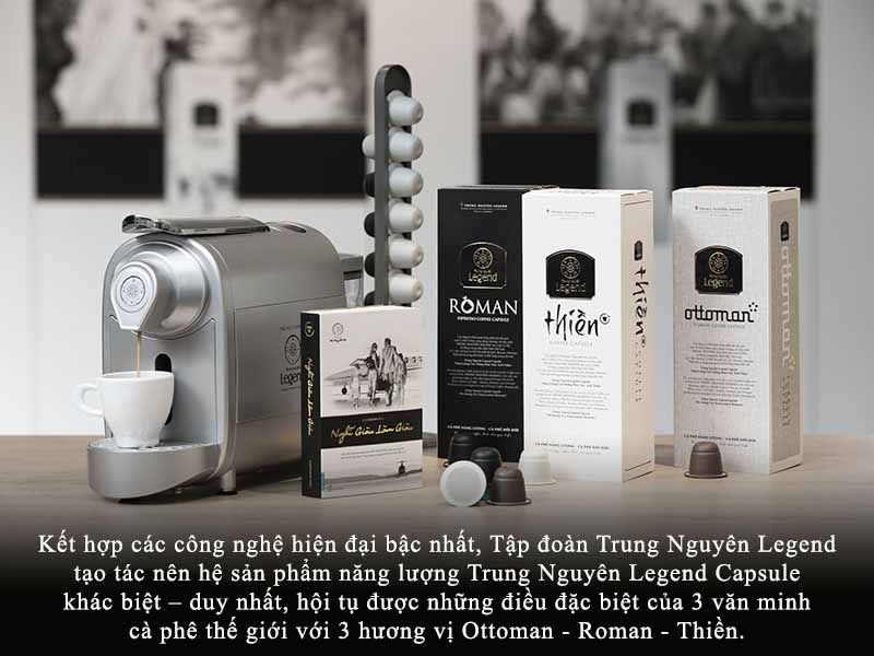 Bằng tình yêu, niềm đam mê cà phê và hơn 23 năm nghiên cứu về lịch sử, văn hóa, kinh tế cà phê trên toàn cầu, các chuyên gia Trung Nguyên Legend đã nỗ lực tâm huyết giới thiệu 3 nền văn minh cà phê thế giới đại diện cho văn hóa, lịch sử cà phê thông qua những tuyệt phẩm cà phê năng lượng. Và đến nay, ứng dụng công nghệ hiện đại bậc nhất, Tập đoàn Trung Nguyên Legend tạo tác nên hệ sản phẩm năng lượng Trung Nguyên Legend Capsule khác biệt – duy nhất, hội tụ được những điều đặc biệt của 3 văn minh cà phê thế giới với 3 hương vị Ottoman – Roman – Thiền. Trong đó, Trung Nguyên Legend Capsule hương vị Roman mang đặc trưng cà phê phong cách Ý, chuyển tải ý niệm khát vọng đưa con người vượt thường chính mình để tiến đến cuộc sống thành công và hạnh phúc.