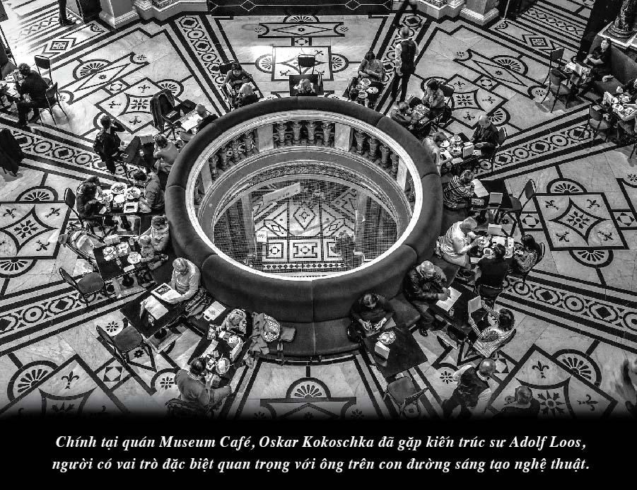 Giữa làn sóng tinh thần thời đại mới đó, ở quán Museum Café, danh họa Oskar Kokoschka đã gặp kiến trúc sư Adolf Loos – người thiết kế quán Museum Café. Đây được ví như dấu mốc quan trọng đánh dấu bước ngoặt trong sự nghiệp của danh họa Oskar Kokoschka. Adolf Loos nhanh chóng đưa Kokoschka gia nhập nhóm nghệ thuật thuật thường hoạt động tại Museum Café như Gustav Klimt, Egon Schiele. Từ đây, phong cách sáng tác của Oskar Kokoschka đã có những chuyển biến quan trọng. Ông thoát ra khỏi lối vẽ của hội họa cổ điển và đặt những nền tảng đầu tiên cho trào lưu hội họa Biểu hiện (Expressionism), một trong những trào lưu hội họa có tầm ảnh hưởng lớn đối với nền mỹ thuật phương tây thế kỷ 19.