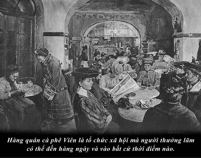 Trong chiều hướng đó, hàng quán cà phê tại Viên chính là nơi chốn giúp con người thấu hiểu bản chất đời sống, phát huy tính hiền giả tiềm ẩn trong mỗi người. Nơi đây đã góp phần quan trọng vào quá trình Ludwig Wittgenstein tìm ra mối liên hệ giữa thế giới (thực tại), tư tưởng và ngôn ngữ. Và hàng quán cà phê cũng trở thành một loại hình câu lạc bộ dân chủ, một tổ chức xã hội lý tưởng không thể thiếu trong giới trí thức thành Viên, tạo cơ hội cho họ gặp gỡ đàm thoại, tự do tranh luận, khơi dậy suy tưởng, hình thành nên làn sóng trào lưu tư tưởng thời đại “bùng nổ văn hóa”.