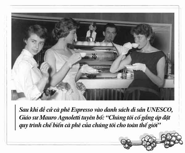 Ngày nay, văn hoá cà phê Espresso là biểu tượng của bản sắc dân tộc Ý, thu hút phần còn lại của thế giới thực hành theo. Người Ý không bán cà phê, không bán thiết bị pha chế. Thông qua cà phê, Ý đang quảng bá sự xuất sắc của người Ý và một lối sống Ý không thể nhầm lẫn, không thể thay thế.