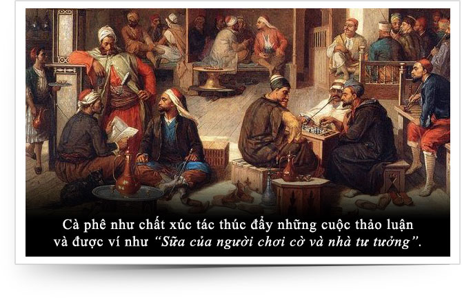 Cà phê như chất xúc tác thúc đẩy những cuộc thảo luận và được ví như “Sữa của người chơi cờ và nhà tư tưởng”. Quán cà phê đóng vai trò là nơi trao đổi kiến ​​thức và được gọi là “Mekteb-i ‘irfan” – trường học tri thức, cung cấp và phổ biến các ý tưởng mới. Đồng thời phá vỡ rào cản giai tầng xã hội, thúc đẩy xã hội hóa.