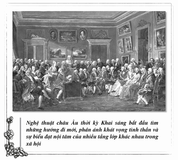 Với niềm tin duy lý về vũ trụ và tầm nhìn lạc quan về một xã hội lý tưởng hậu quân chủ, các nhà triết học Khai sáng đã định hình vai trò mới cho nghệ thuật. Nếu quá khứ, nghệ thuật phục vụ giới quý tộc, nhà thờ và nhà nước, thì trong xã hội mới, nghệ thuật phải “vì con người”, phải là đạo đức thay vì vô đạo đức, và dạy con người đúng sai. Đây là bước ngoặt quan trọng của thế giới nghệ thuật, xác định nhiệm vụ của nghệ thuật hướng đến việc tạo giá trị cho công chúng, xã hội. Giới nghệ thuật bắt đầu có sự thấu đạt về bản thân, xã hội, mang khát vọng khám phá và thử nghiệm những điều mới mẻ. Các tác phẩm nghệ thuật nhấn mạnh vào tính khách quan, chân lý thực nghiệm hơn là sự trừu tượng, vĩ đại.