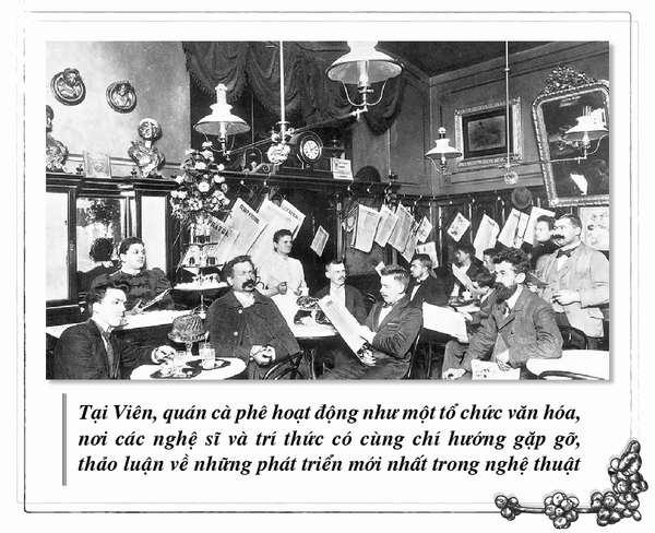 Cùng với cà phê, hàng quán cà phê châu Âu mà điển hình là Pháp, Ý, Viên đóng vai trò vô cùng quan trọng trong lịch sử nghệ thuật. Đó là trung tâm tri thức dành cho giới nghệ thuật tự do đối thoại, quan sát, tương tác xã hội và sáng tạo. Rời xa những giới hạn của giới hàn lâm, người nghệ sĩ có thể đến quán cà phê, gặp gỡ những con người cùng chí hướng, chia sẻ ý tưởng và nguồn cảm hứng, sáng tạo nên những nguyên tắc nghệ thuật mới.