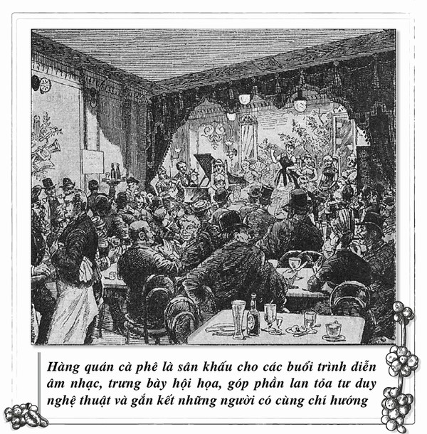 Bầu không khí sôi nổi và cởi mở cũng biến hàng quán cà phê trở thành địa điểm lý tưởng thử nghiệm những đổi mới nghệ thuật và phổ truyền các giá trị văn hóa đến gần hơn công chúng.
