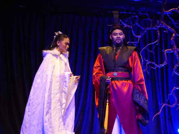 Từ Thanh Ngân (vai Thúy Kiều), Nguyễn Kit (vai Hồ Tôn Hiến) trong vở Kỹ nữ