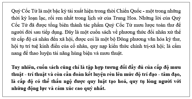 (Đón đọc kỳ sau: Quỷ Cốc Tử Mưu lược toàn thư – Phi kiềm)