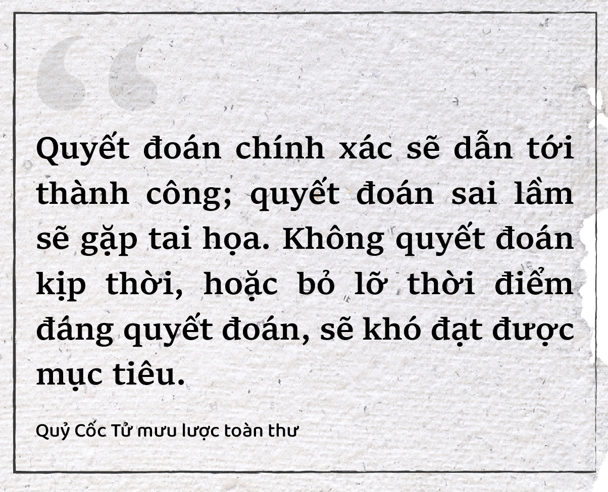 Người mưu lược không chỉ biết nghĩ xa, tính kỹ mà còn phải hiểu khi nào cần hành động dứt khoát. Quyết định là bước cuối cùng, là yếu tố biến mưu kế thành hiện thực. Kẻ do dự giữa hai con đường, dù nhận ra thời cơ nhưng vì chần chừ mà để lỡ, cuối cùng tự đưa mình vào thế bị động. Bởi vậy, Quỷ Cốc Tử nhấn mạnh: người có “quyết” là người dám gạt bỏ nghi hoặc, nắm bắt thời cơ và hướng đến đại cục.