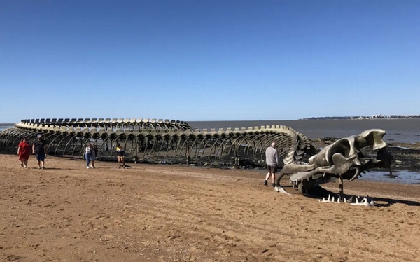 Lạ lùng bộ xương rắn khổng lồ trên bờ biển hoang vu nước Pháp