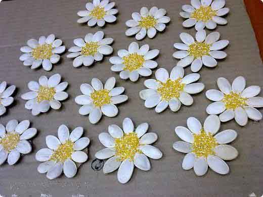 + Cho keo sữa vào giữa bông hoa, đổ sao cho khéo không bị tràn ra ngoài. Sau đó rắc hạt ngũ cốc lên trên để chúng dính vào lớp keo này.