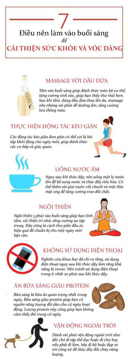 Đây là những điều mà nhiều chuyên gia khuyến khích bạn nên làm vào buổi sáng để tốt cho tinh thần, sức khỏe và giúp một ngày của bạn tràn đầy năng lượng.