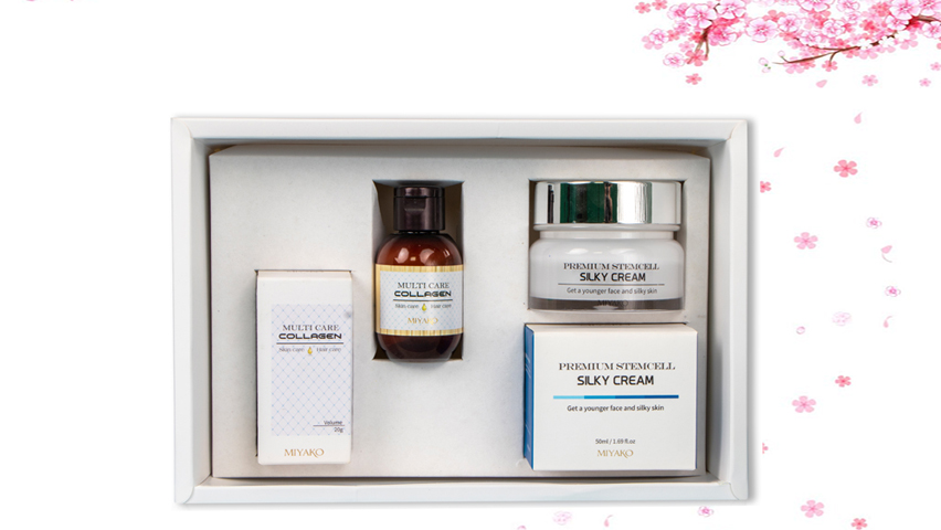 Bội đôi sản phẩm này là sự kết hợp hoàn hảo giữa Tế bào gốc nhau thai và Collagen từ hai sản phẩm cao cấp của MIYAKO, giúp tăng hiệu quả dưỡng da và chống lão hóa gấp 2 lần. Sản phẩm là sự áp dụng của các công nghệ tiên tiến như công nghệ Vitamin Waterdrop™ dưỡng trắng da, cấp ẩm sâu, tăng khả năng hấp thụ các thành phần hoạt tính trên da. Công nghệ thủy phân cá ngừ tiên tiên tạo ra Bột collagen nguyên chất Miyako với thành phần 99% bột collagen nguyên chất, tan ngay khi kết hợp với Kem dưỡng tái tạo da tế bào gốc Miyako.