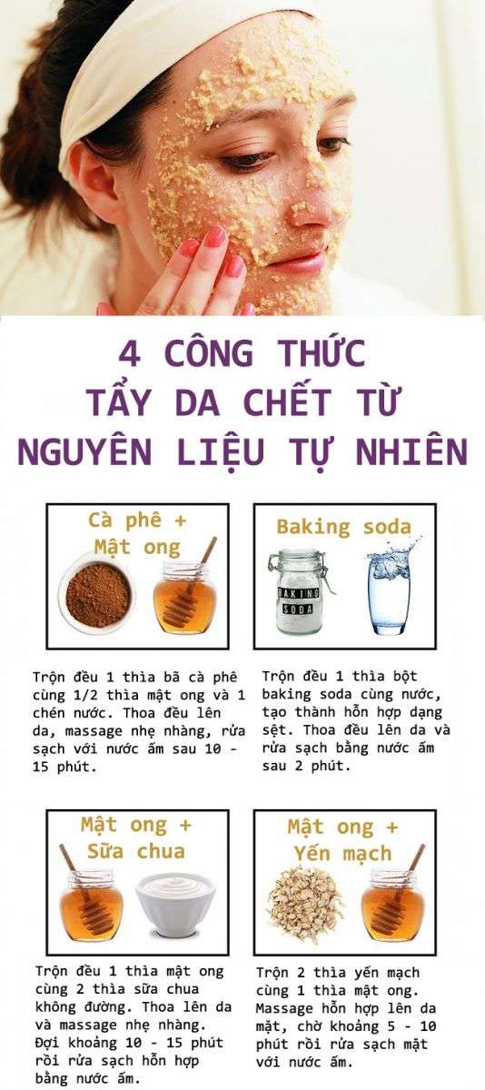 Tẩy tế bào chết là bước dưỡng da quan trọng giúp loại bỏ bả nhờn, khơi thông lỗ chân lông, hạn chế việc phát sinh của mụn. Bạn có thể áp dụng phương pháp tẩy tế bào chết tại nhà với các công thức đơn giản sau.