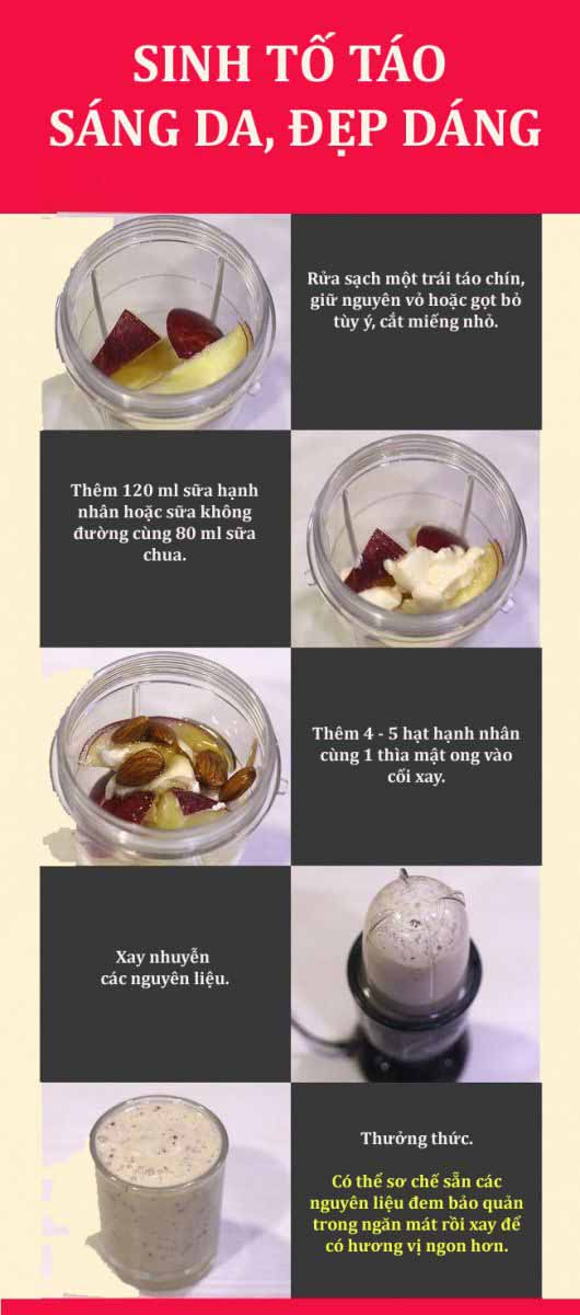 Những ngày nghỉ lễ, bạn có thể làm cho bản thân và gia đình ly sinh tố táo cung cấp đầy đủ chất xơ thích hợp thay thế bữa sáng hoặc làm bữa ăn nhẹ trong ngày, giúp đẹp da và giữ được vóc dáng.