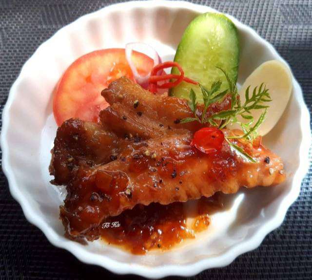 Món sườn chiên mắm rất thơm ngon, đậm vị với màu sắc đẹp, mềm bóng hấp dẫn. Mỗi lần làm món này tôi chỉ cần cắt thêm đĩa dưa leo ăn kèm là xong bữa tối không tinh bột ngon lành thỏa mãn.