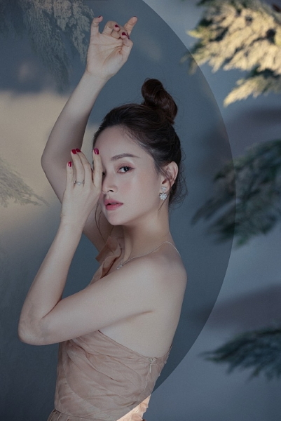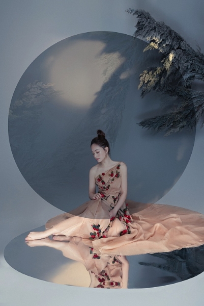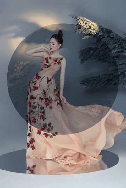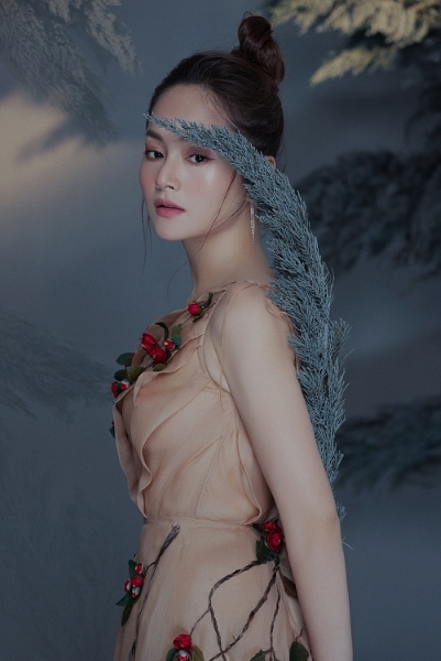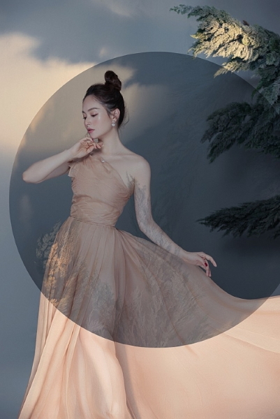 Chọn những chiếc đầm voan nhẹ nhàng, thướt tha, điểm xuyết là những bông hồng nhỏ đính kết tinh tế, phối cùng kiểu tóc bới cao, Lan Phương khoe gương mặt thanh tú và nét yêu kiều tựa mỹ nhân trong tranh vẽ. Thần thái của nữ diễn viên vừa lạnh lùng lại có chút dịu dàng, vừa thực lại vừa ảo, cuốn hút người xem.