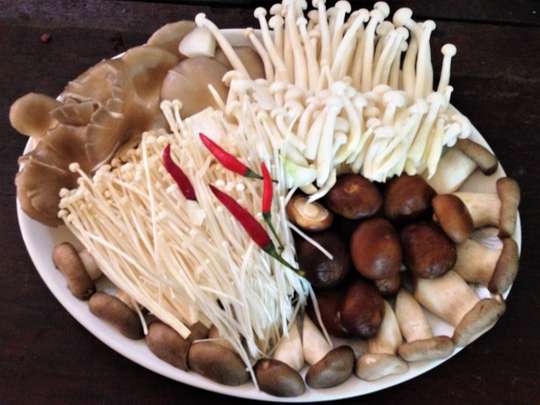 – Nấm đùi gà, nấm hương, nấm bào ngư, nấm kim châm, nấm tuyết, nấm linh chi trắng… mỗi loại 200 gram.