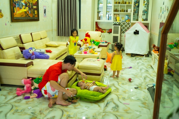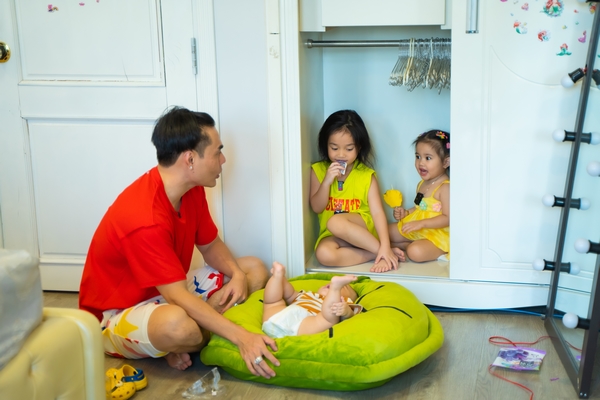 Loạt khoảnh khắc “ông bố siêu nhân” chăm sóc 3 con khiến cộng đồng mạng thích thú.