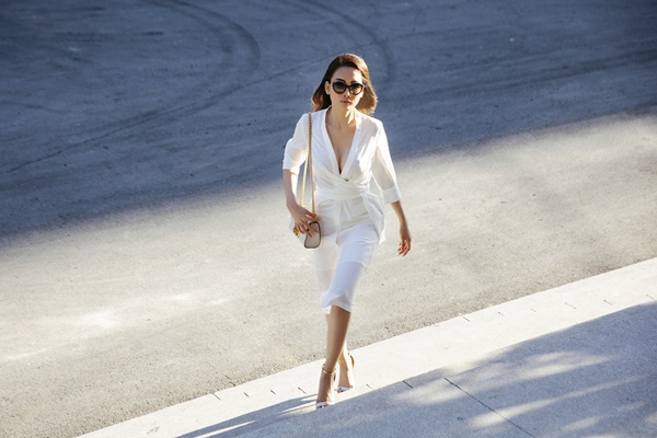 Trước đó, người đẹp diện trang phục đơn giản, thoải mái có mặt để tham gia buổi tổng duyệt. Nữ người mẫu khoác lên mình bộ cánh màu trắng đơn giản, thoải mái và trang nhã. Phần ngực được khoét sâu khoe vòng một gợi cảm nhưng vẫn đầy sang trọng. Lối trang điểm nhẹ nhàng kết hợp cùng chiếc mắt kính vô cùng “ăn rơ” với set đồ thanh lịch.