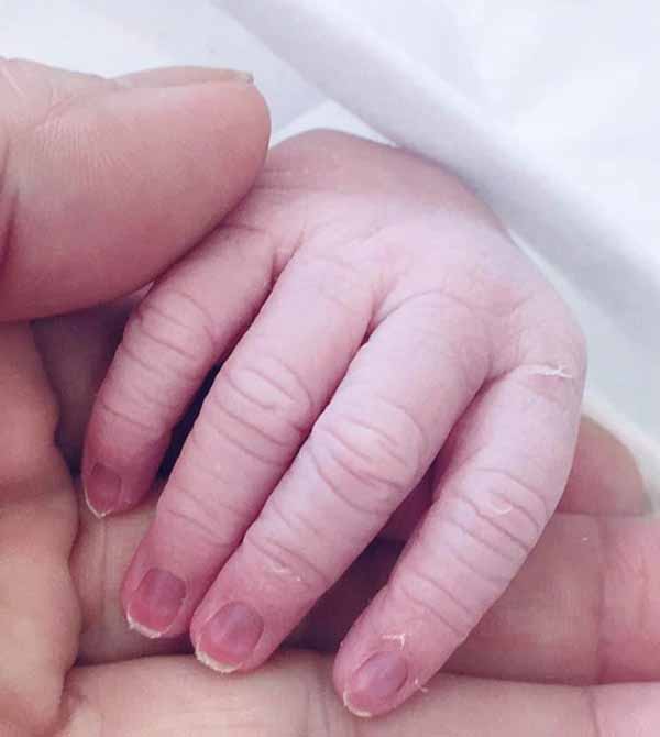 Trung Kiên khoe bức ảnh bàn tay của con gái vừa chào đời.