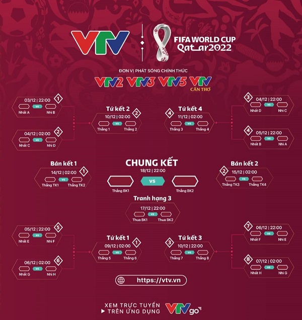 Lịch thi đấu vòng đấu loại trực tiếp World Cup 2022
