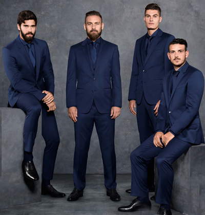 Alisson Becker (trái) và các cầu thủ AS Roma trong chiến dịch quảng cáo cho Hugo Boss.