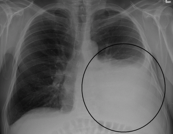 – Khi chụp X-quang phổi thấy hình mờ đậm, đồng đều, dịch thường ở dưới thấp, có khi mờ ở cả hai bên phổi, tim bị đẩy sang bên đối diện.