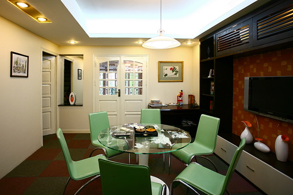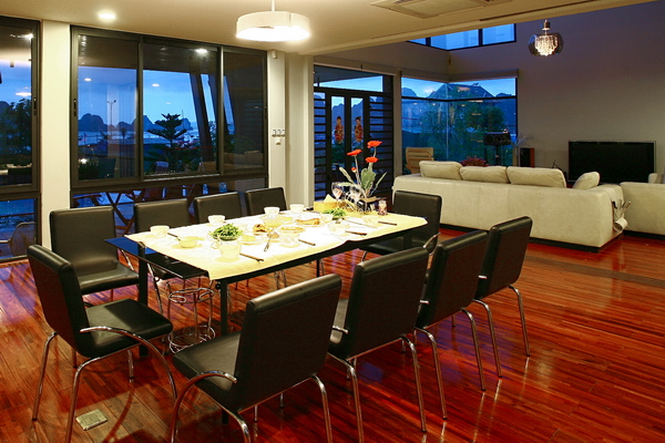Bàn dài, một kiểu kê sắp linh hoạt phù hợp với mặt bằng.