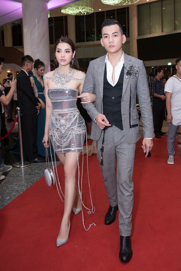 Xuất hiện nổi bật trên thảm đỏ, Phương Trinh Jolie thu hút sự chú ý bởi vẻ ngoài xinh đẹp, lộng lẫy. Diện chiếc váy có thiết kế lạ mắt của Chung Thanh Phong, Phương Trinh Jolie tự tin thả dáng.