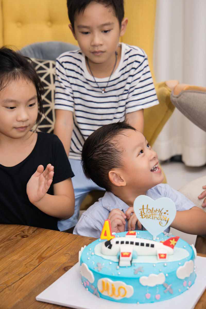 Sau gần một thập kỷ gắn bó, cả hai có 4 người con, hai trai và hai gái. Mới đây, trong ngày sinh nhật của chàng trai 4 tuổi bé Mio (Nguyễn Phi Phong). Thay vì tổ chức tiệc sinh nhật hoành tráng, Mio được bố mẹ chuẩn bị chiếc bánh kem xinh xắn đón tuổi mới cùng các thành viên trong gia đình.